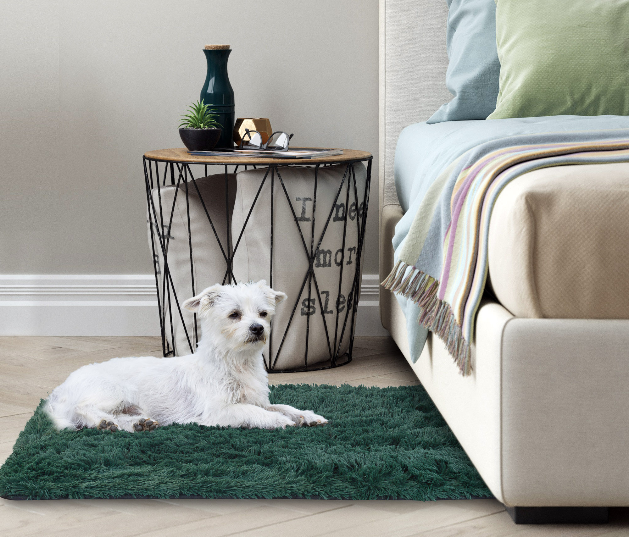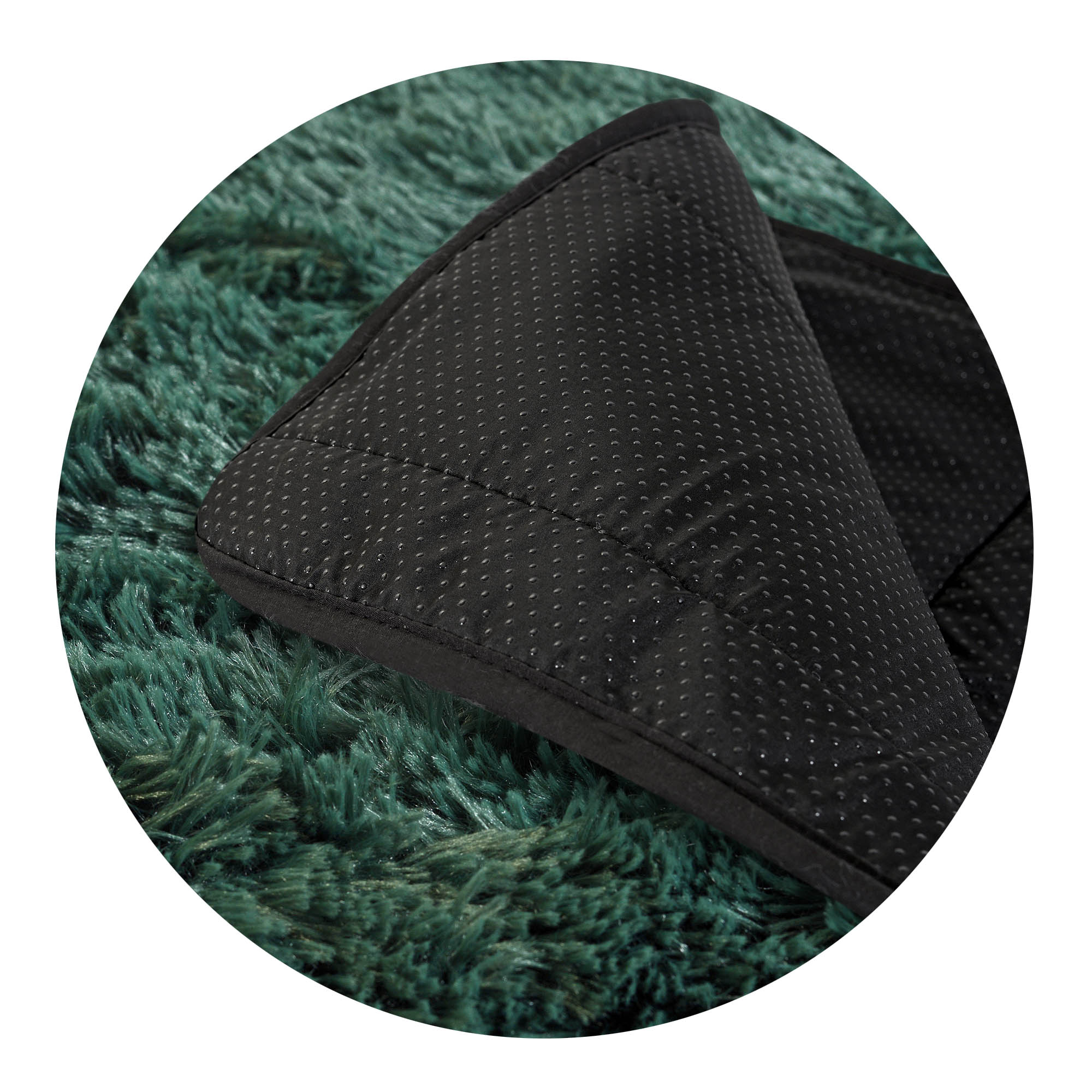 - Spód antypoślizgowy z gumowymi wypustkami – zapobiega przesuwaniu się dywanu.